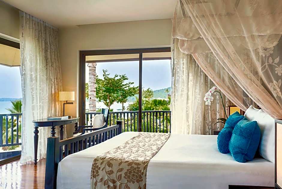 Spacious suite features a balcony with sea view, a flat-screen cable/satellite TV and DVD player. It has a mini-bar and safety deposit box. A bathtub is included in an private bathroom.